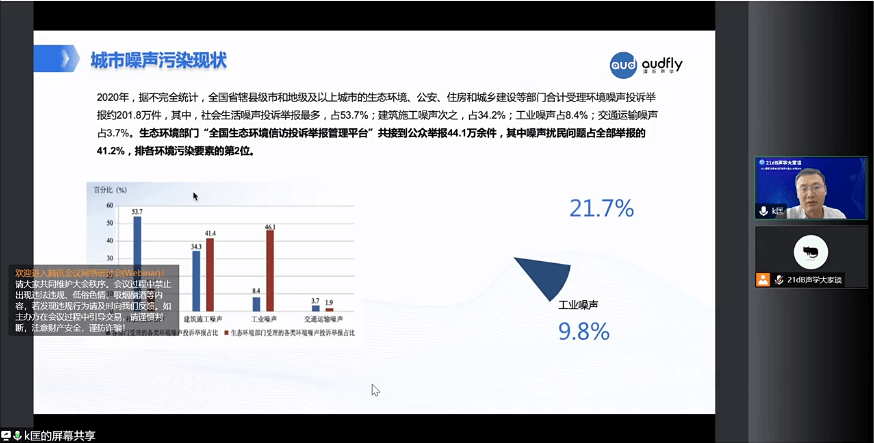 會議伊始,曾任中國聲學(xué)學(xué)會環(huán)境聲學(xué)分會主任委員、中國振動工程學(xué)會振動與噪聲分會副理事長、全國聲學(xué)標(biāo)準(zhǔn)化專業(yè)噪聲分會副主任,曾參加我國多項(xiàng)環(huán)境噪聲標(biāo)準(zhǔn)、噪聲防治條例、噪聲法制定的中科院聲學(xué)所研究員——程明昆老師為大家?guī)砹恕董h(huán)境聲學(xué)與噪聲法》的主題演講。程明昆老師不僅對即將在6月5日正式實(shí)施的《中華人民共和國噪聲防治法》進(jìn)行了全面分析,還對中國噪聲治理聲學(xué)發(fā)展史進(jìn)行了有趣的分享。