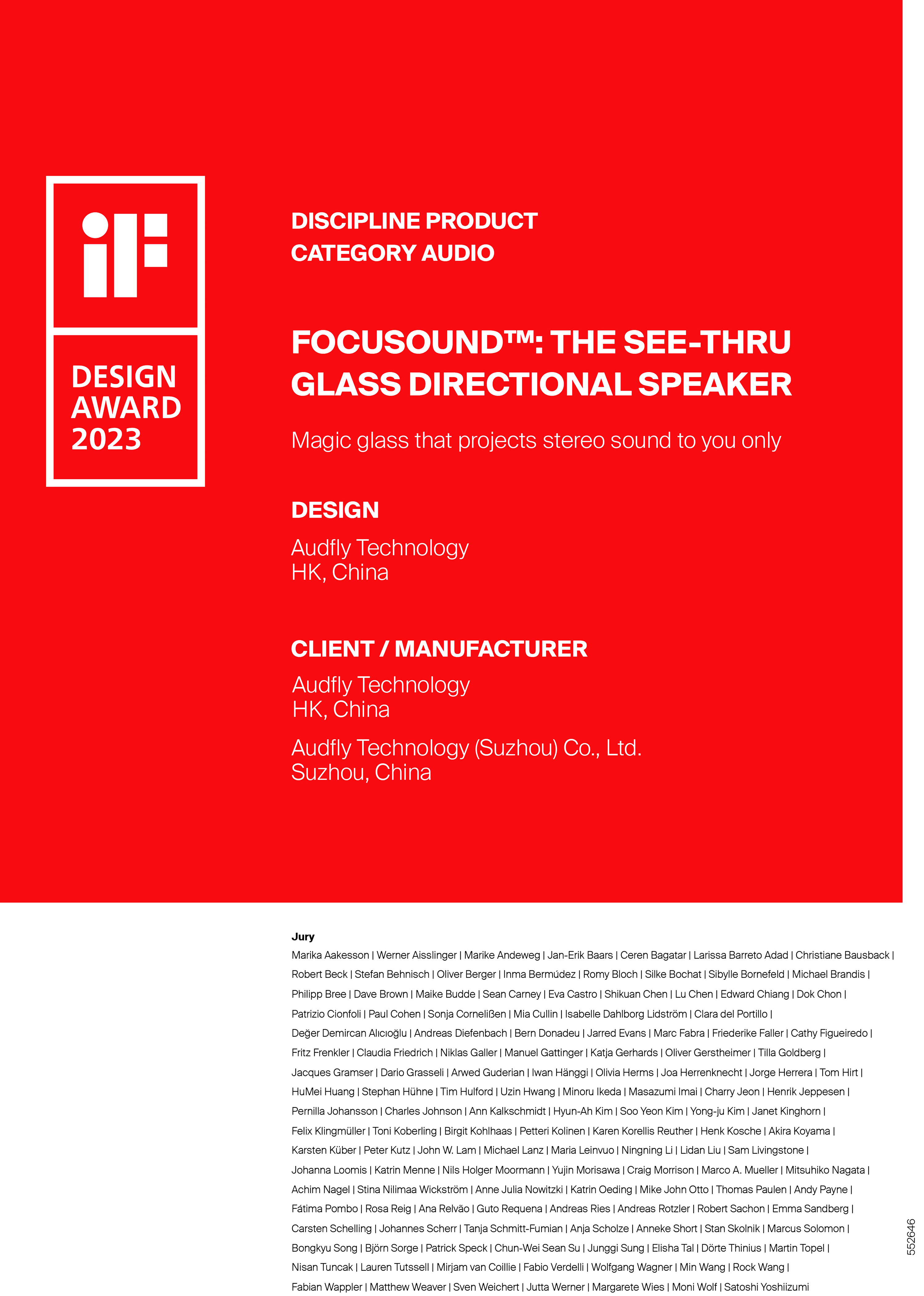 近日,德國(guó)iF設(shè)計(jì)獎(jiǎng)組委會(huì)公布了2023年iF設(shè)計(jì)獎(jiǎng)最終名單,清聽聲學(xué)Focusound™聚音屏憑借出色的創(chuàng)意設(shè)計(jì)和交互體驗(yàn),從56個(gè)國(guó)家/地區(qū)的11000多件入圍作品中脫穎而出,榮獲“2023年iF設(shè)計(jì)獎(jiǎng)”。