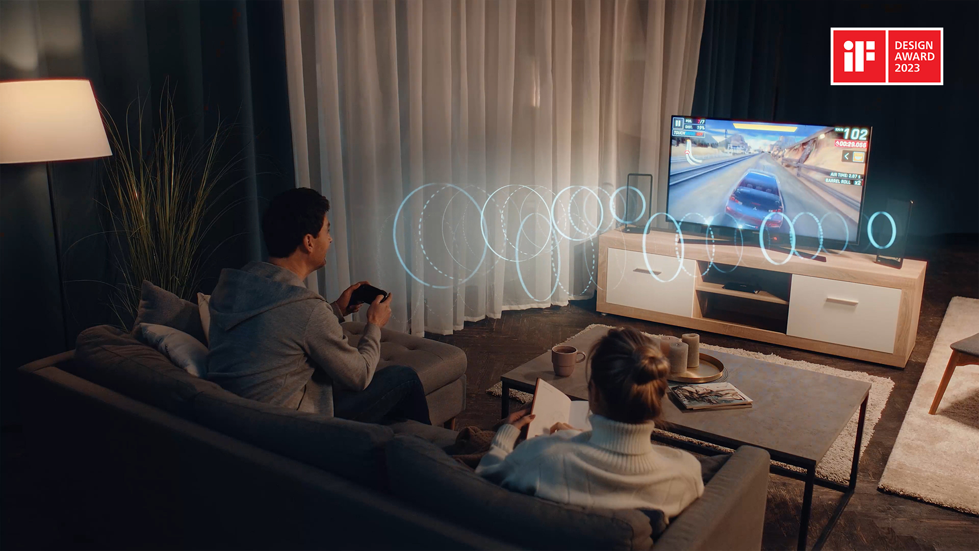 聚音屏依托獨(dú)家技術(shù),利用屏幕本身作為發(fā)聲單元,營(yíng)造超越整個(gè)屏幕的全域音效,實(shí)現(xiàn)“音畫融合”,給用戶提供360°全環(huán)繞沉浸式音效體驗(yàn),創(chuàng)造身臨其境的現(xiàn)場(chǎng)感。