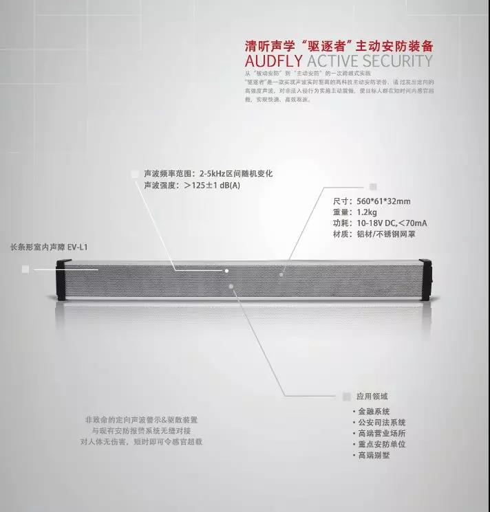 驅(qū)逐者主動(dòng)安防裝置作為科技型聲學(xué)創(chuàng)新安防“武器”,堅(jiān)持“不傷害人體健康”的原則,以高科技手段為銀行安防提供新思路。