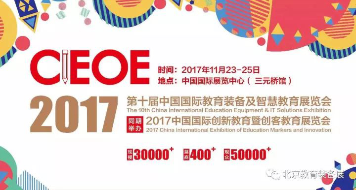 2017年11月23日至25日,第十屆中國(guó)國(guó)際教育裝備及智慧教育展覽會(huì)將在北京中國(guó)國(guó)際展覽中心舉辦,屆時(shí)會(huì)有400+國(guó)內(nèi)外展商展出包含教育信息化、智慧校園、創(chuàng)客教育、在線教育、校園新風(fēng)等相關(guān)產(chǎn)品、技術(shù)及解決方案。