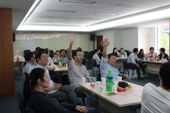 首先,小伙伴們通過抽簽分成了六個小組,參與“有獎猜猜猜”游戲。游戲規(guī)則是,由每組推薦出的組長代表進行搶答,團隊成員通力合作答題,最終得分最高的團隊可獲得一份神秘的禮物。