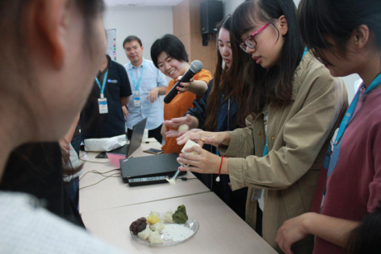 清聽聲學(xué)的小伙伴們不只有智慧,還有美貌和巧手。在智力比拼結(jié)束后,更有美女老師手把手教大家做月餅。脫離辦公室的鍵盤、放下手里的螺絲刀與器件,原本各司其職的清聽人拿起軟糯的冰皮和餡料,有模有樣地揉圓、攤平、包裹、入模……小巧的冰皮月餅就成型啦!